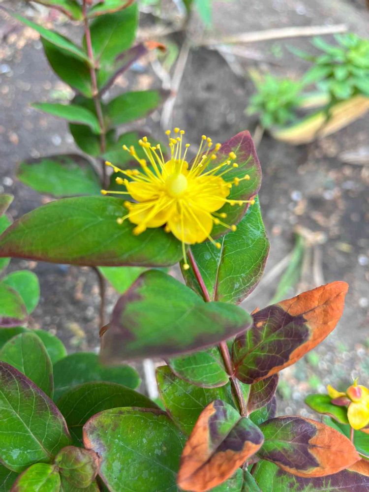 ヒペリカムが、咲いてくれました。葉も、紅葉して綺麗です。大好きなお花😍👍