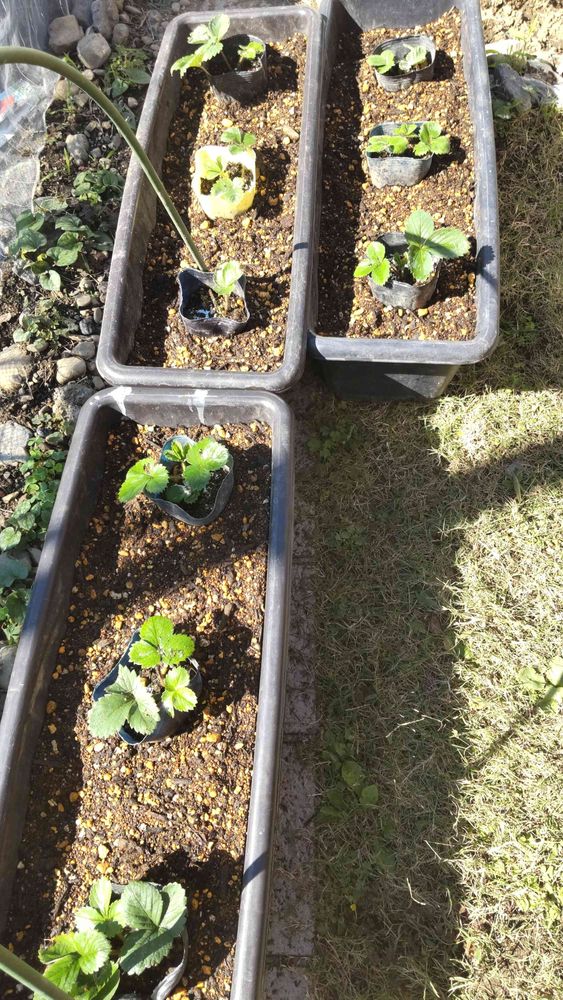いちごの苗準備中。😃プランターにも土肥入れ2週間後に定植予定です。再生の土はどうしても虫、ナメクジが付くので注意してみます。😫😃☺️
