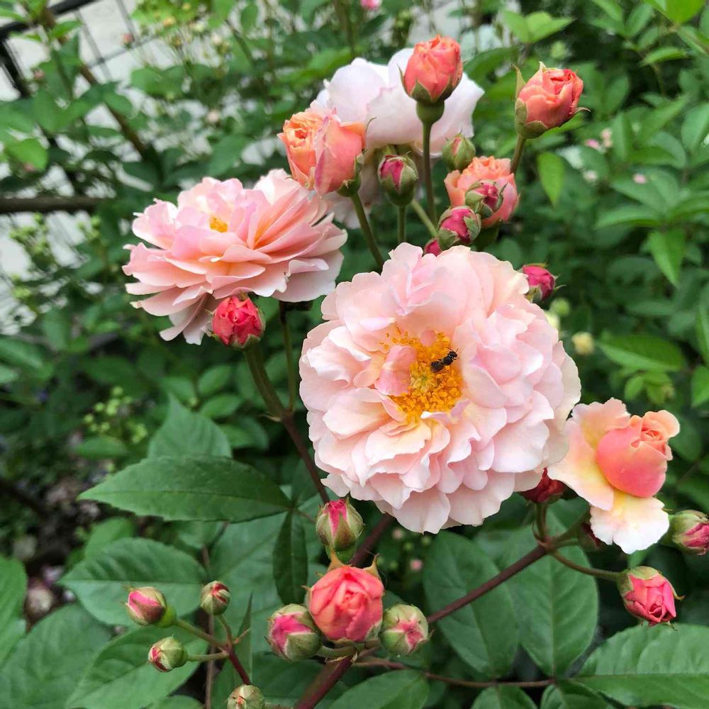 病気にも強いし花付きもいい🎶小さめのアプリコット色の花は他のバラとも馴染みやすくてオススメです(੭ु ›ω‹ )੭ु💕💕