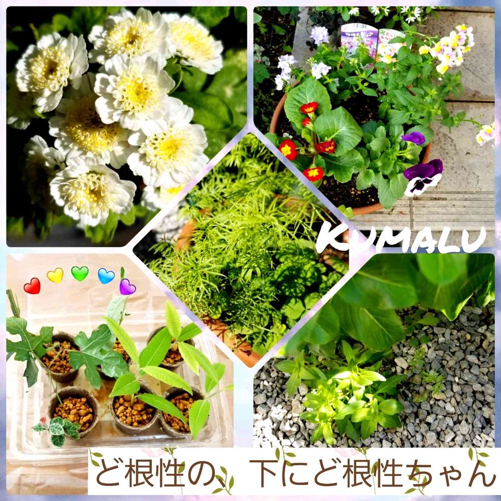 ↘ど根性ニッチーの下にど根性のキンギョソウとニゲラ戦士