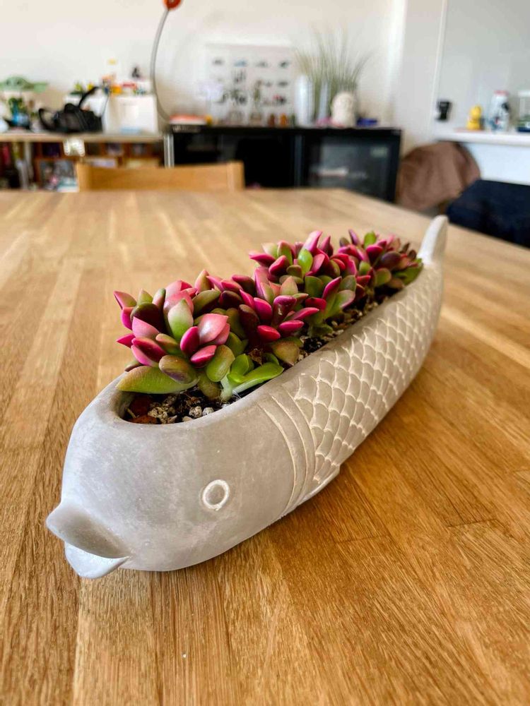 先週、多肉の桜吹雪をおさかなの鉢に植え替えました。