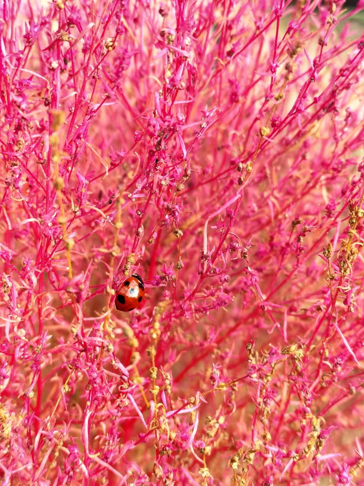 てんとう虫君コキアから落ちないように必死につかまってた。