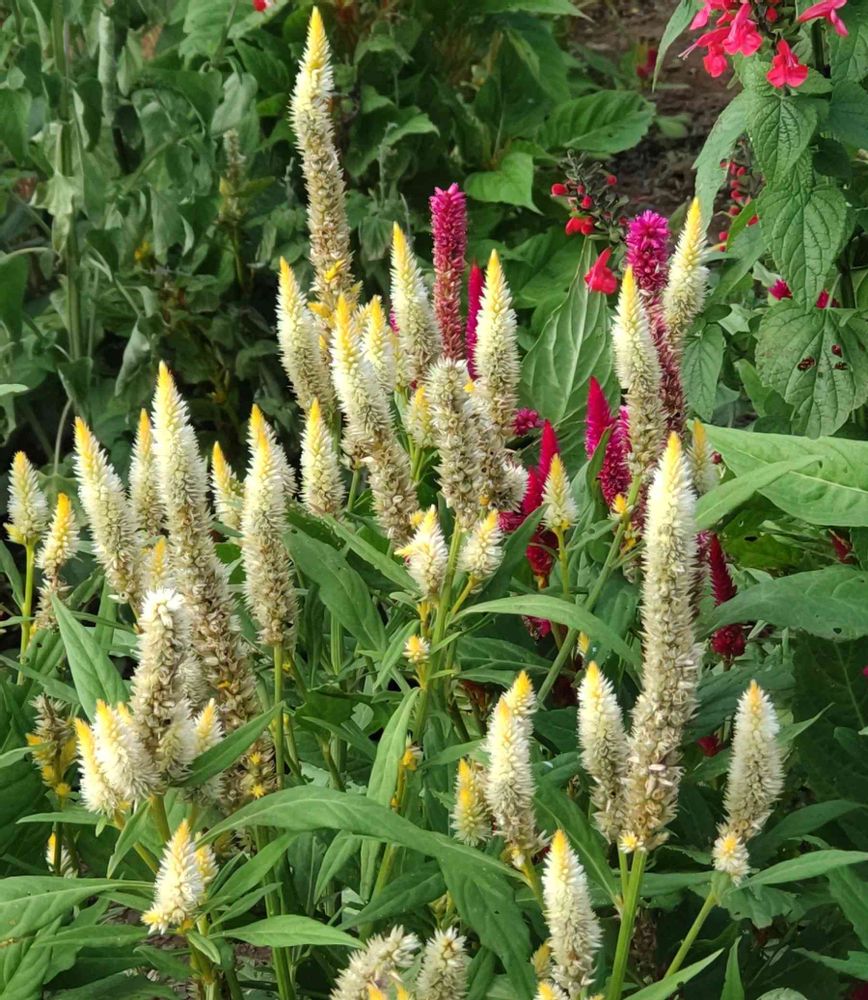赤いケイトウと、珍しい白がかった黄色のケイトウが、綺麗に溶け込んでいました🔸🔸