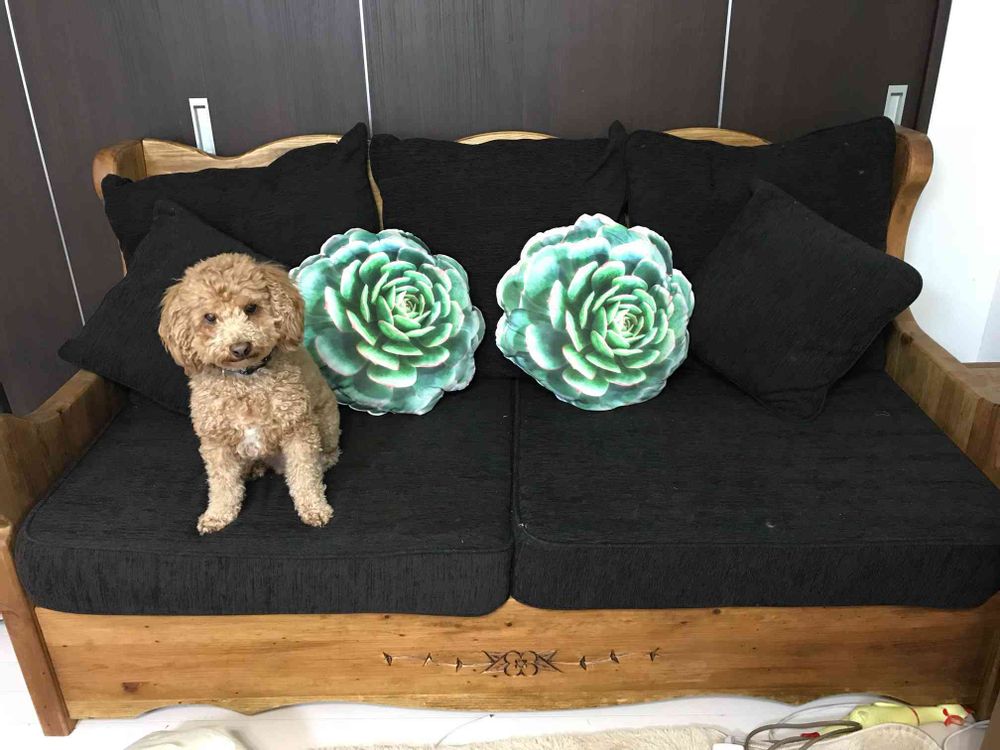 クッションいいね(*∩ω∩)でも、このソファとっても好みです❤そしてワンちゃん🐶いい表情してる可愛すぎだわ\(♡~♡)/