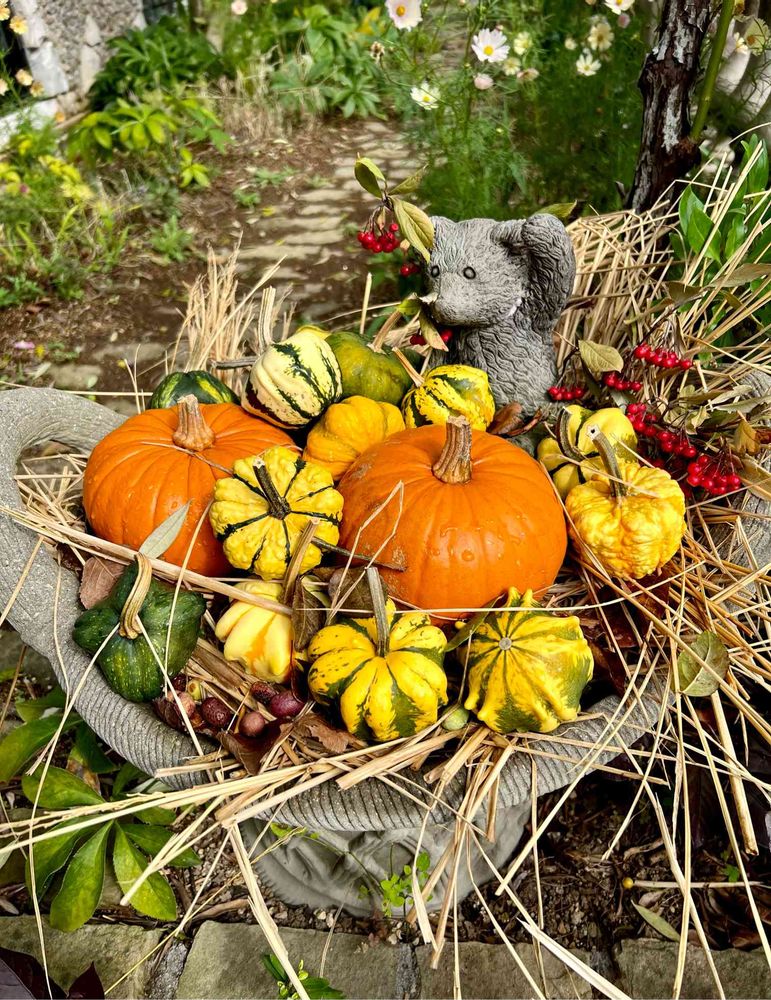 熊(ベアー)君の籠には、かぼちゃや木の実や赤い実が沢山\(^^)/
