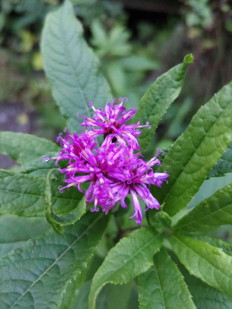 夏から秋にかけて暗赤紫色のアザミとフジバカマの中間的な花を咲かせる様です🌸
