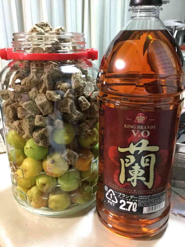 いつもダークラムと黒糖で漬けていますが、去年は(安物の)ブランデーで漬けてみました。
