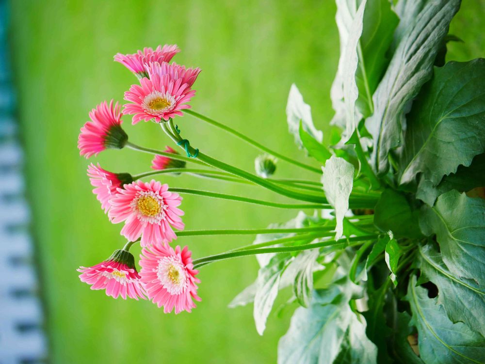 いつも見るガーベラと違って、小さい花だけど、首がスッと長くて素敵ですね💖