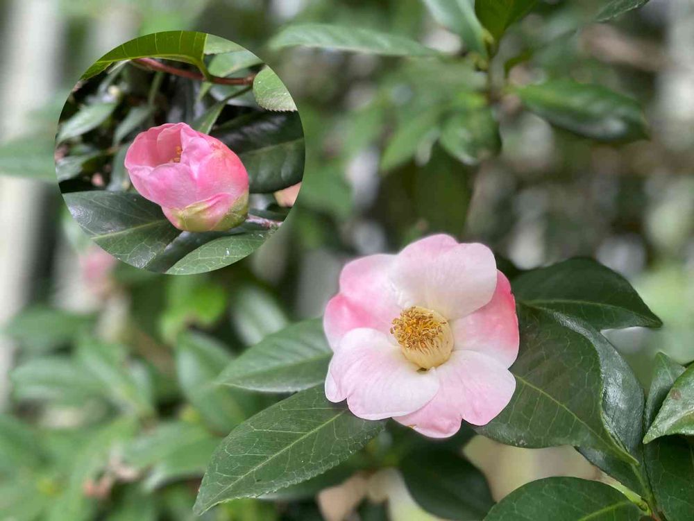 桃色をぼかしたような上品な色合いのツバキですね🌺