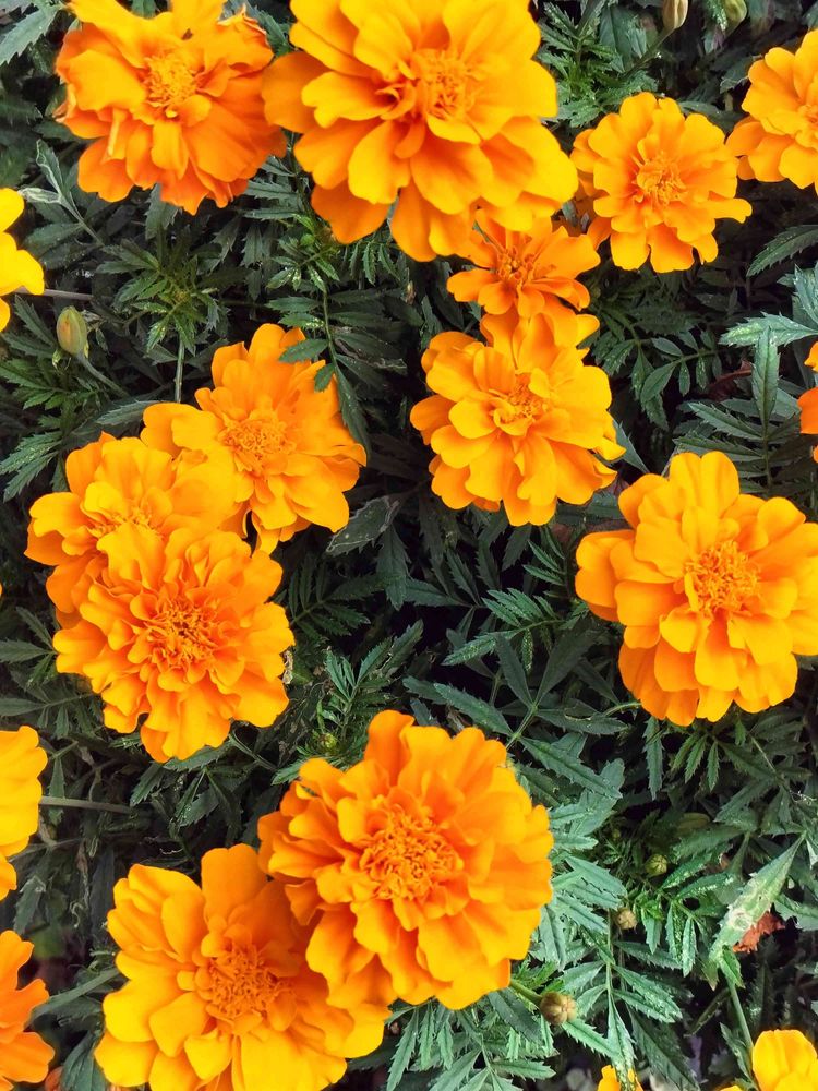 散歩道、あちこちでマリーゴールドが綺麗に咲いています。