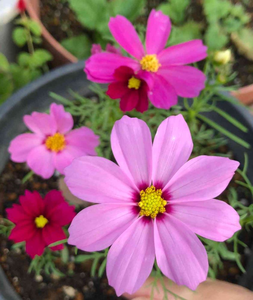 ダイソーで買って、種まきした🌼ミニコスモスが咲きました。可愛らしい😍💓✨