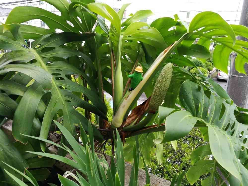 久々のゴーヤーマンがベランダで好き勝手育ってるモンステラの中から参上🥒