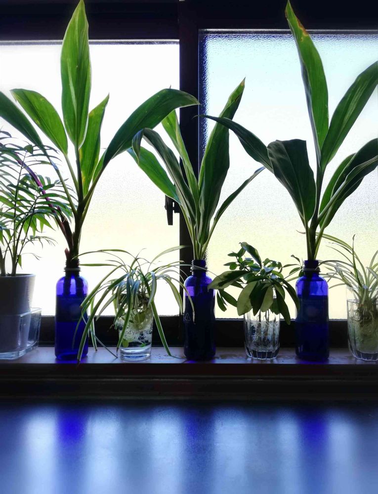 ブルー💙はグリーン🌿ともよく合うので投稿してみようという気になりました。キッチンの窓辺の光✨で綺麗に見せてくれました😄🧡
