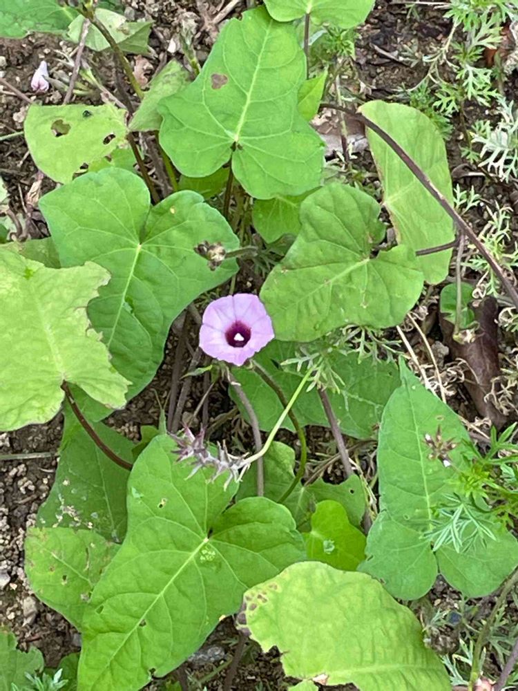 朝顔がこんな所に生えてきた(植えていないのに😅)・・・と、思っていたら予想していたのとは違う花が咲きました。ホシアサガオという外来種とのこと。