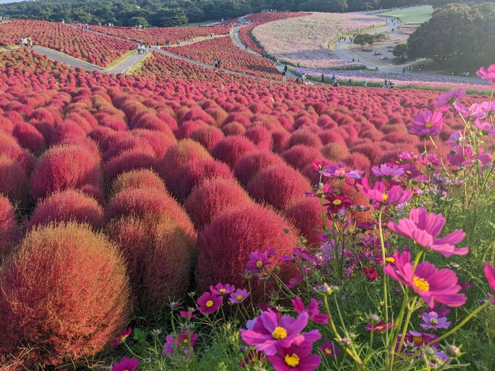 絨毯のように広がるコキアとコスモスがとても綺麗でした✨