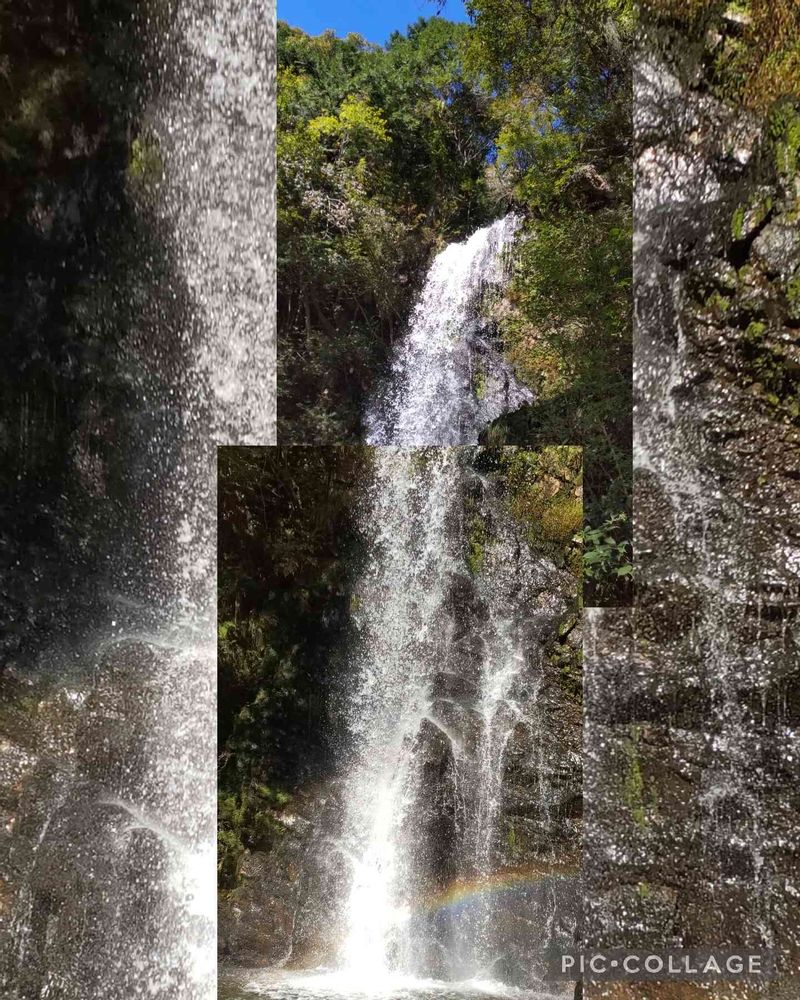 滝壺近くに🌈が出ていたし、青空も入れたいし、あんまり小さくなっちゃうと分かりにくいし…