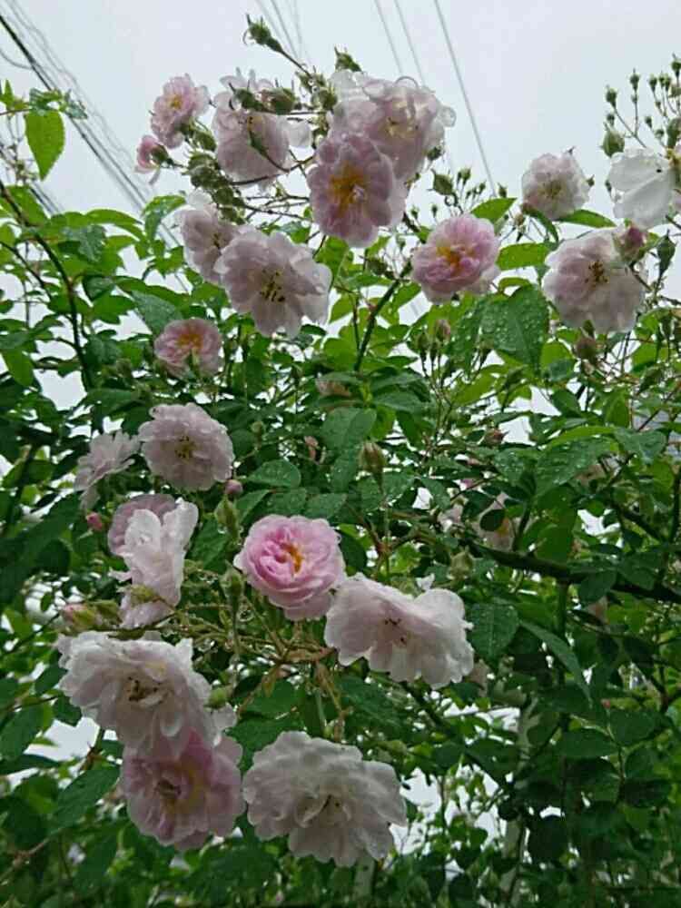 こちらもOGで素敵に誘引されて、優しいお色の小さめのお花が、桜の様にふわふわ一杯咲いてました(^^) 可愛いのに…トゲが💦