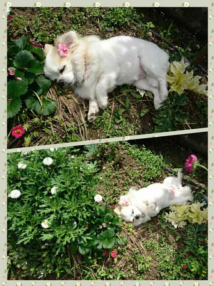 お庭でおひるねとは、我が家はフリーに出来る庭が無いからうらやましいです