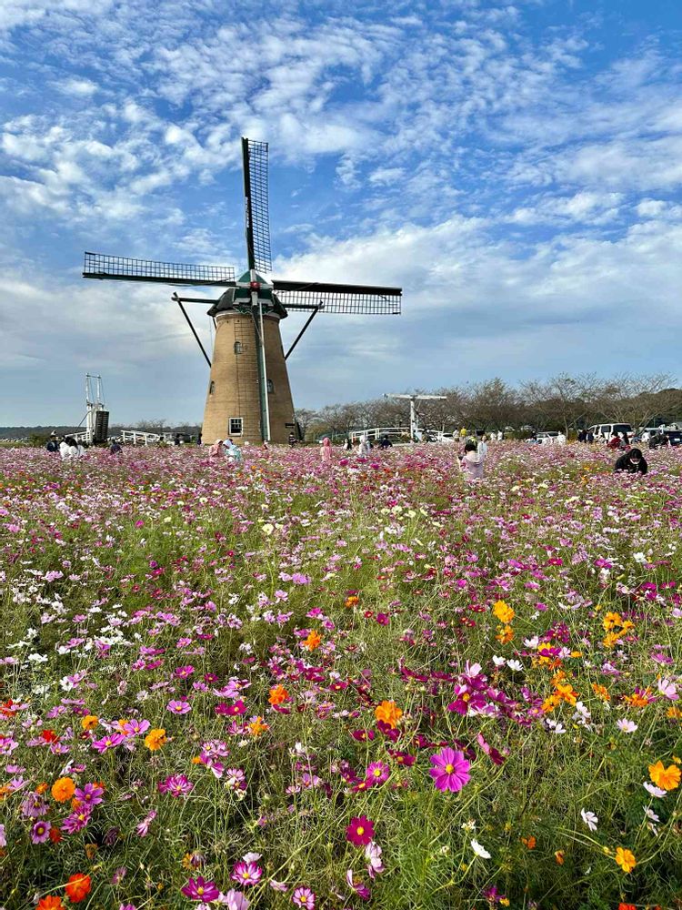 春はチューリップ、秋はコスモスで見応えのある場所です。風車があるので、とても雰囲気が良い場所です♪
