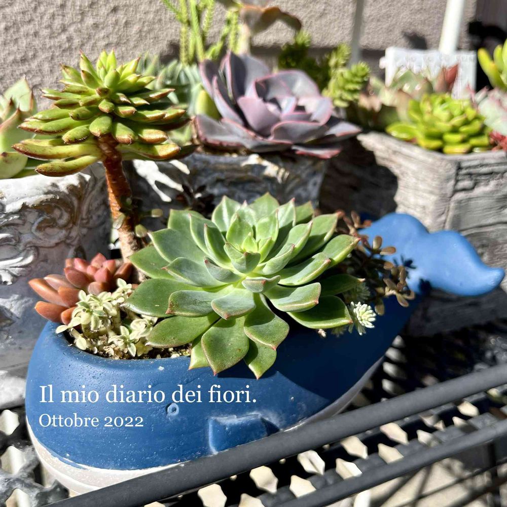 今春、クジラ🐳の鉢に寄せ植えした多肉植物さん。乱れまくっていましたがっ💦セダムをバッサリ切ってなんとか見れる👀ようになりましたっ( ⸝⸝•ᴗ•⸝⸝ )੭⁾⁾