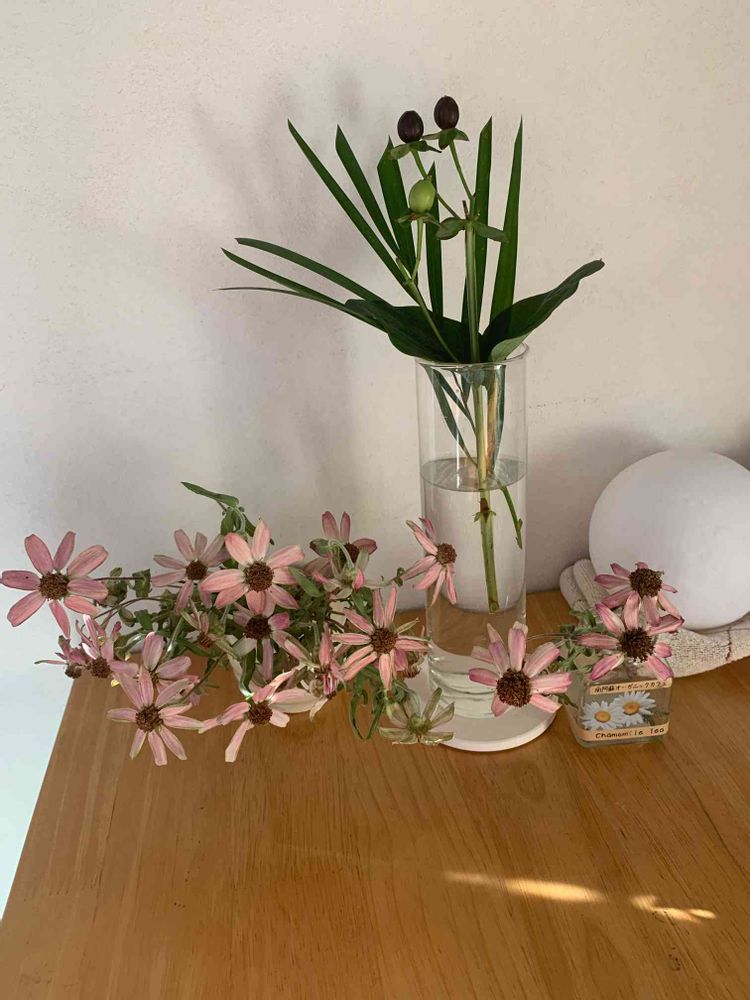 ピンクのジニアをカットして、水に活けていたらドライフラワーが出来ました✨