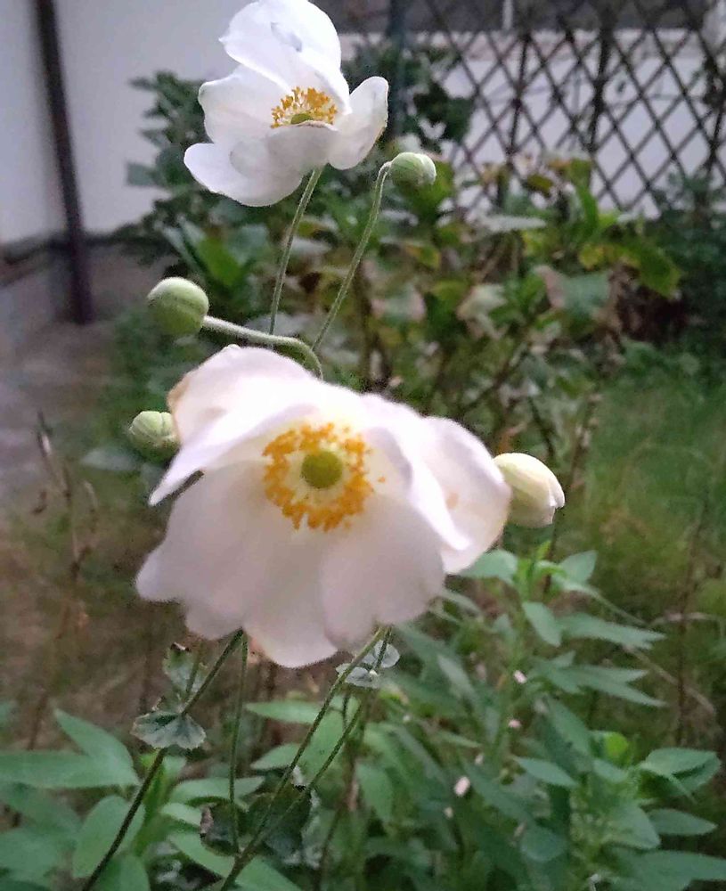 裏庭でひっそり咲いてる白い秋明菊🌼