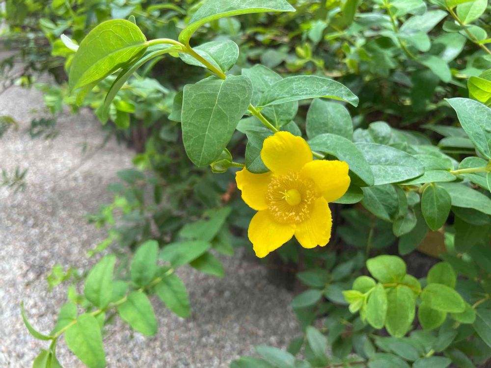 キンシバイとビヨウヤナギの違いがわかりませんが、もう花は終わっていた頃なのか、夏に一輪や二輪ほど花をつけていました😊