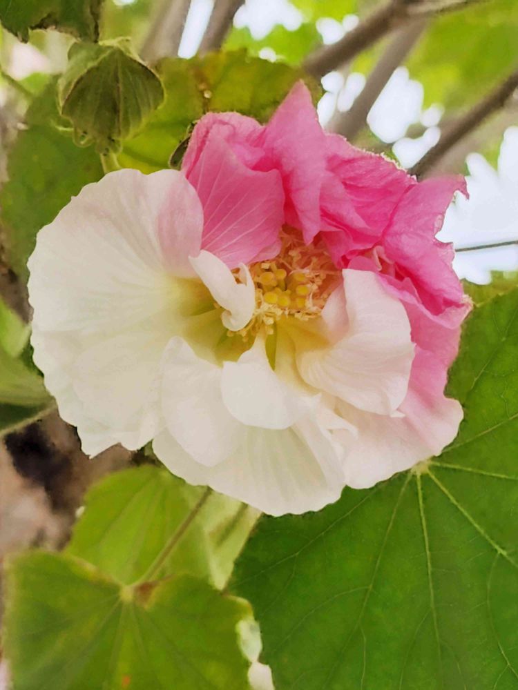 フヨウの真っ白い花びらが白雪を頂いたお山と重なったとしても、心憎いネーミングだと思いましたが、中国では元来、フヨウというのはハスの異名で、日本のフヨウは「木芙蓉」と呼んだそうです。