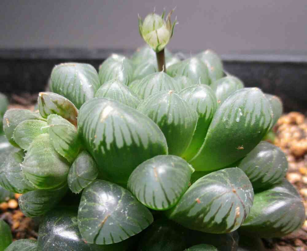 この正月にロゼットの中央近くに子葺いたオブ。今度は花芽を伸ばして と思ったら、間違って子をつけた(花子というらしい)。
