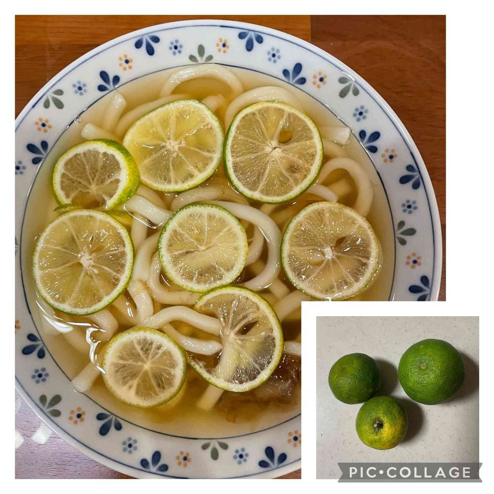 先週は水炊きにして、ポン酢にすだちを入れたんやけど、余っていたんで、うどんにしたんよ💕💕💕