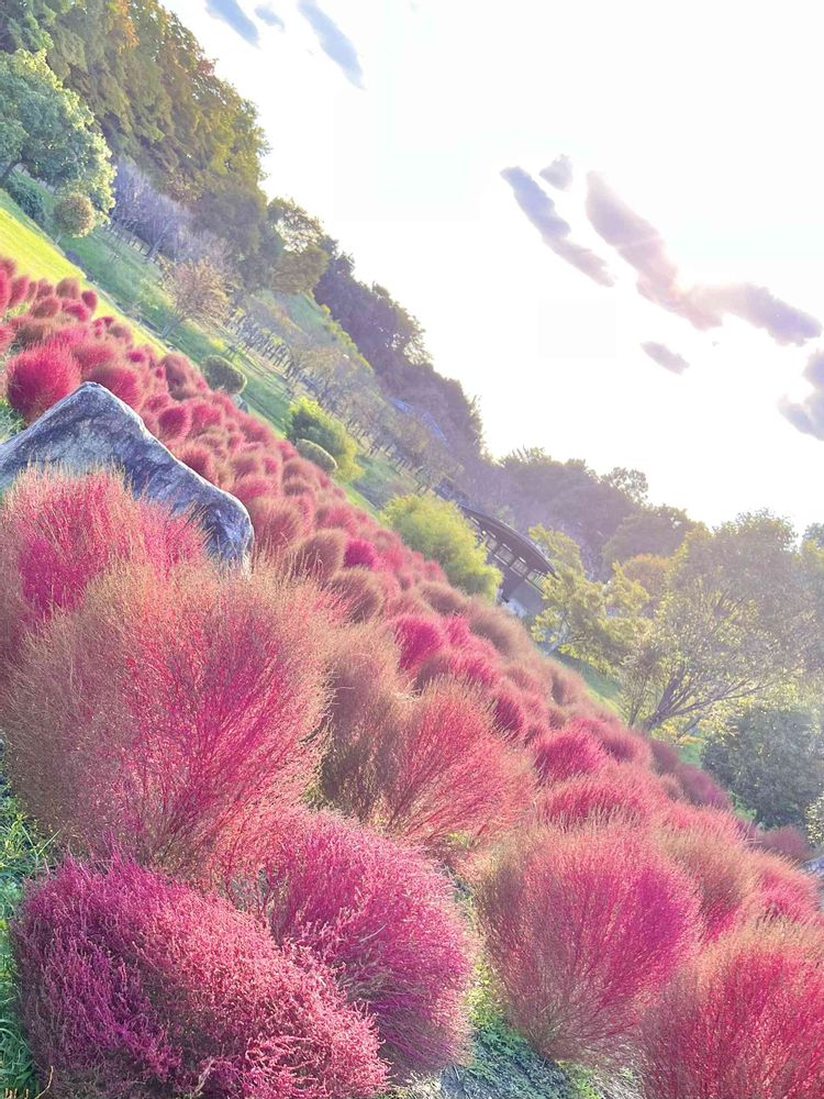 美しいコキアの風景、斜めに撮るセンスが素敵✨。