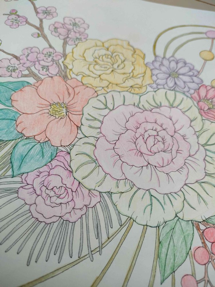 お出かけ先,ピンク色の花,塗り絵の投稿画像