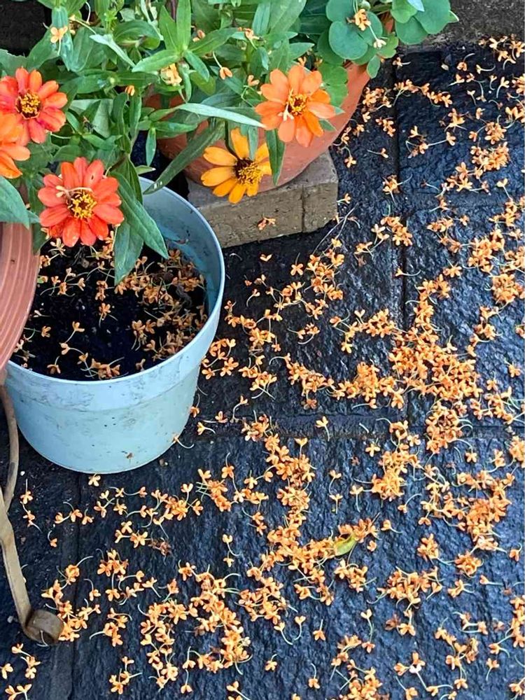 manabeさんの小さな庭,ジニア,金木犀の散った花びらの投稿画像