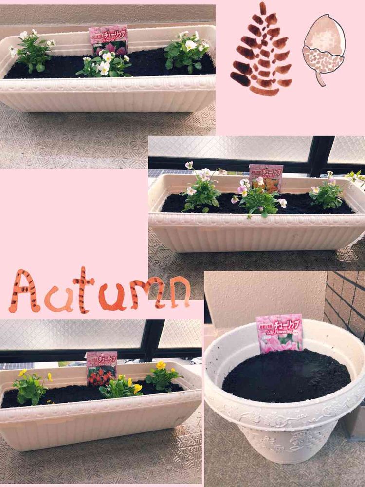 ビオラの間にチューリップ🌷 植えたんだね💓💞 春になったら 可愛く咲いてる賑やかなプランターになるね 私も楽しみにしてるね♪̆̈♪̊̈♪̆̈♪̊̈