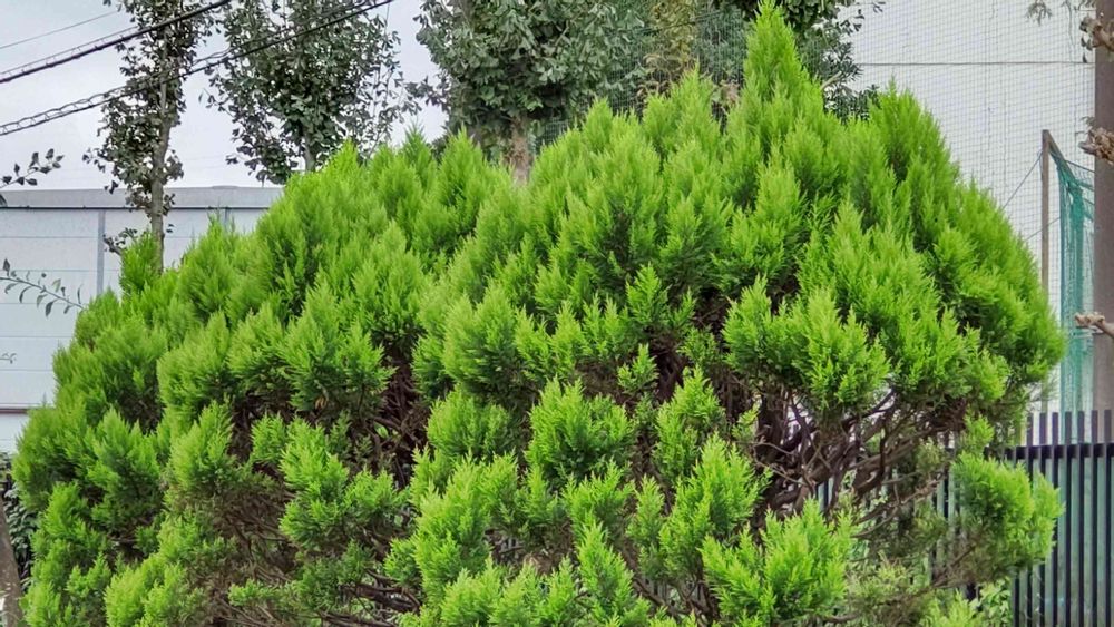 道路脇に垣根のように植えたコニファーです。