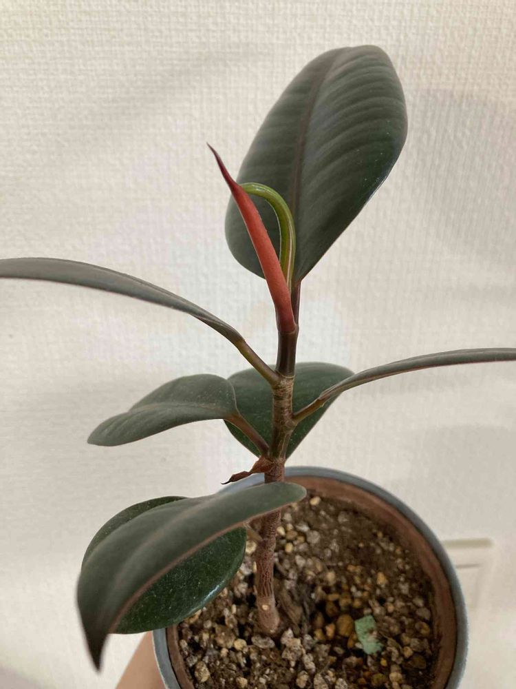 スリコ出身フィカス(多分バーガンディ)に新芽。