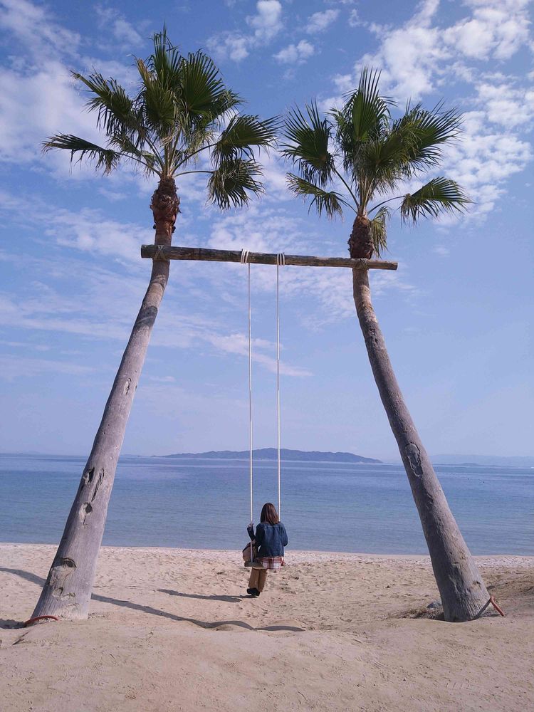 📝このヤシの木のブランコがあるのは、砂浜でのBBQやおいしい魚料理などが楽しめる「ざうお糸島本店」の敷地内になっていますので、ぜひお食事も一緒にお楽しみください。