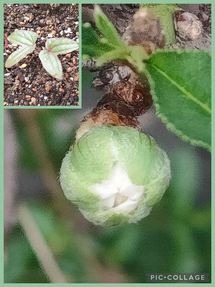 季節外れのあさがおの新芽🌱と桃の花の蕾です‼️