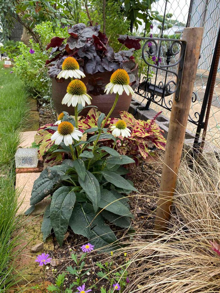 すごーい💕オシャレ☺コリウスもオシャレカラーだしエキナセアも素敵❤そして木の飾りもすごいオシャレ🎶