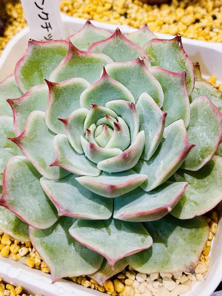 VERVEさんのお得なエケベリア5個おまかせセット。セットの中で一番大きかったピンクチップス。この大きさくるんだ!?ってびっくりした。