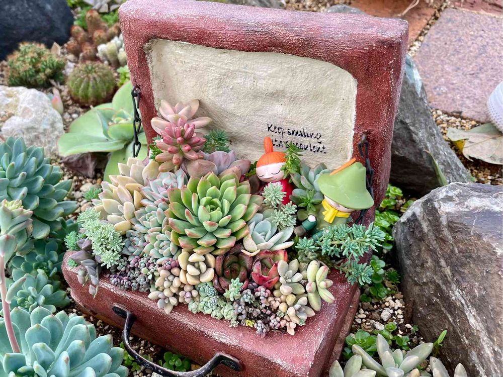 お庭にすてきな多肉の直植えガーデンがあって、これはそこで一番可愛かったトランク寄せ💕