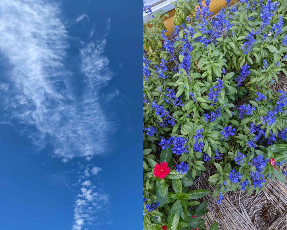 ブルーサルビア💙綺麗にいっぱい咲いたね。赤いお花❤️ワンポイントで可愛い