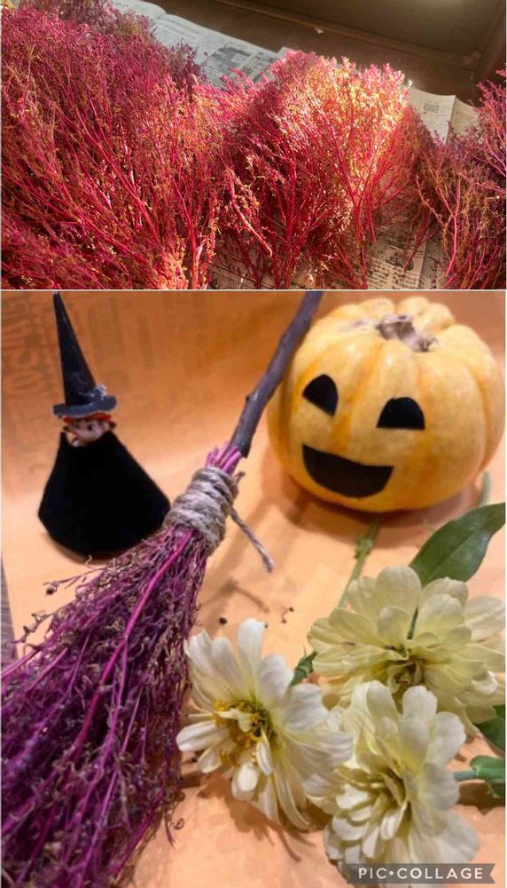 コキアがピンク色になり、可愛い箒が出来ましたね!🧹🍁✨