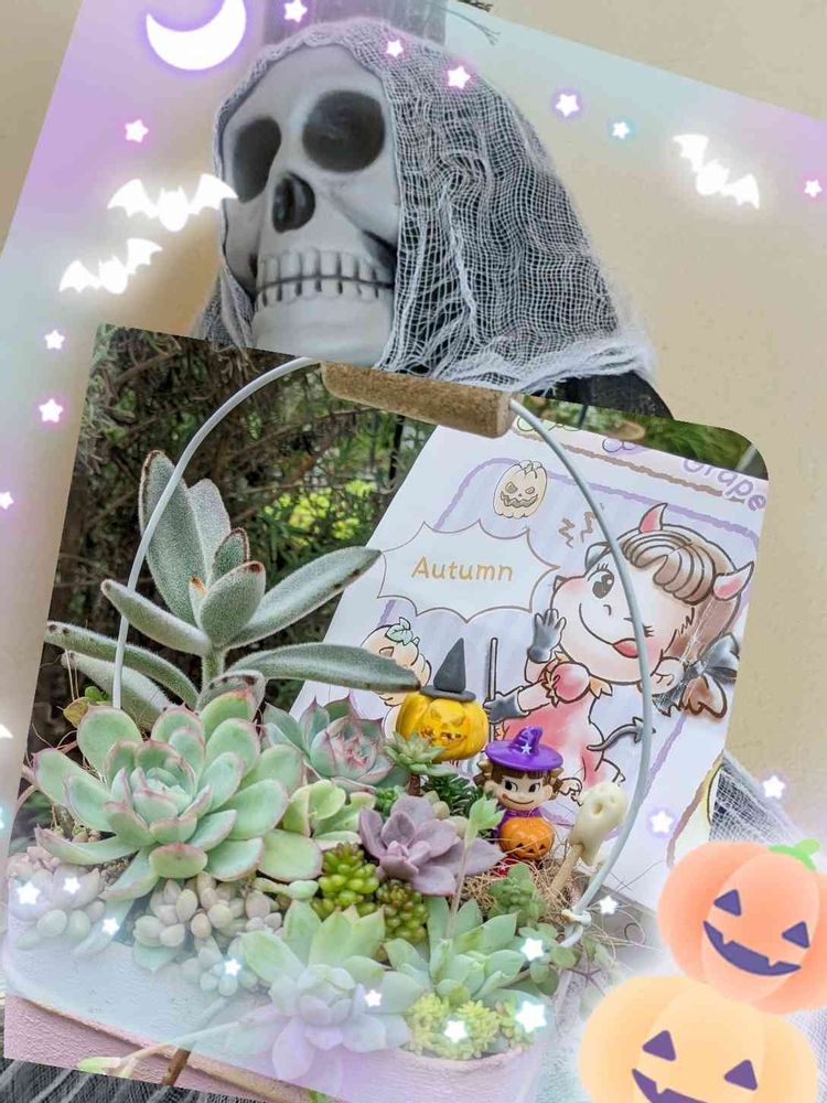 怖い骸骨💀さんが可愛い多肉たちとぺこちゃんを紹介してるみたいで面白い😁