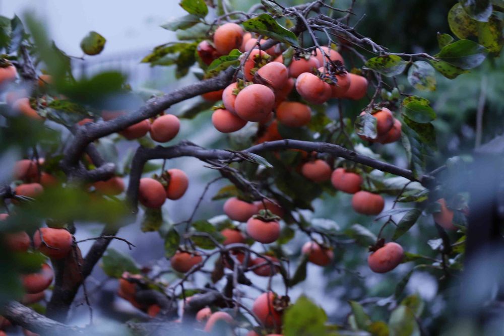 今日(25日)、庭の柿の木の実を撮影しました。風が吹いてるため少しブレてます。③。