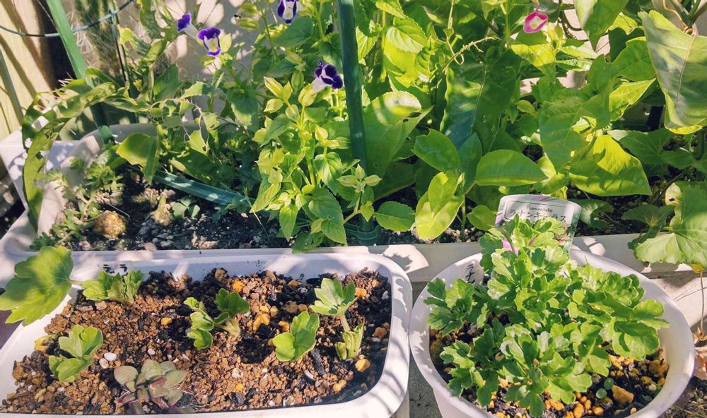 パッションフルーツは、実家からの貰い物で、合間にトレニアもいたようです。