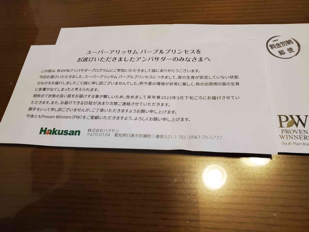 アンバサダーの花苗が届かずお手紙が先に届いたと言う方