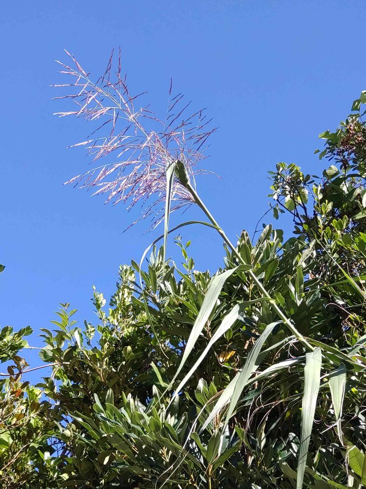 防風林の中に生えてる笹が、先月の台風で倒れてきていたけど、位置が高すぎてそのまま放置してたら、穂が出てきた!!😳