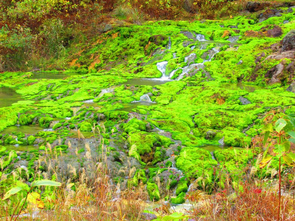 この苔は珍しく強い酸性の温泉水の流れる場所でのみ育ち、ここの他に日本では熊本県の阿蘇で見ることが出来るそうです✨