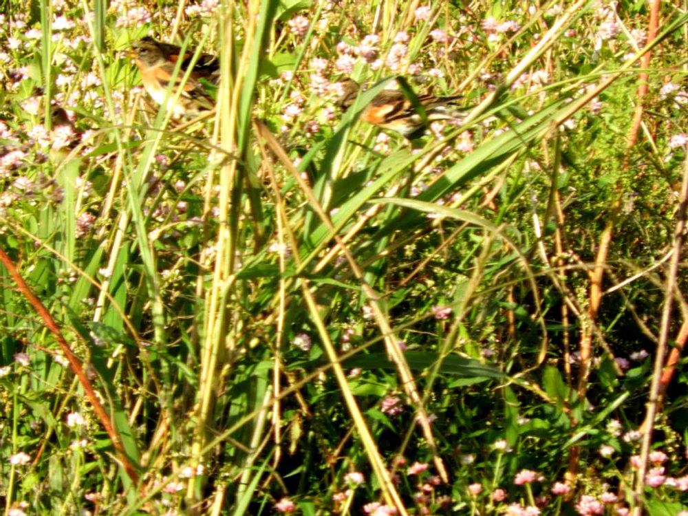 椹野川河川敷に、分かりにくいですが、アトリがいました。